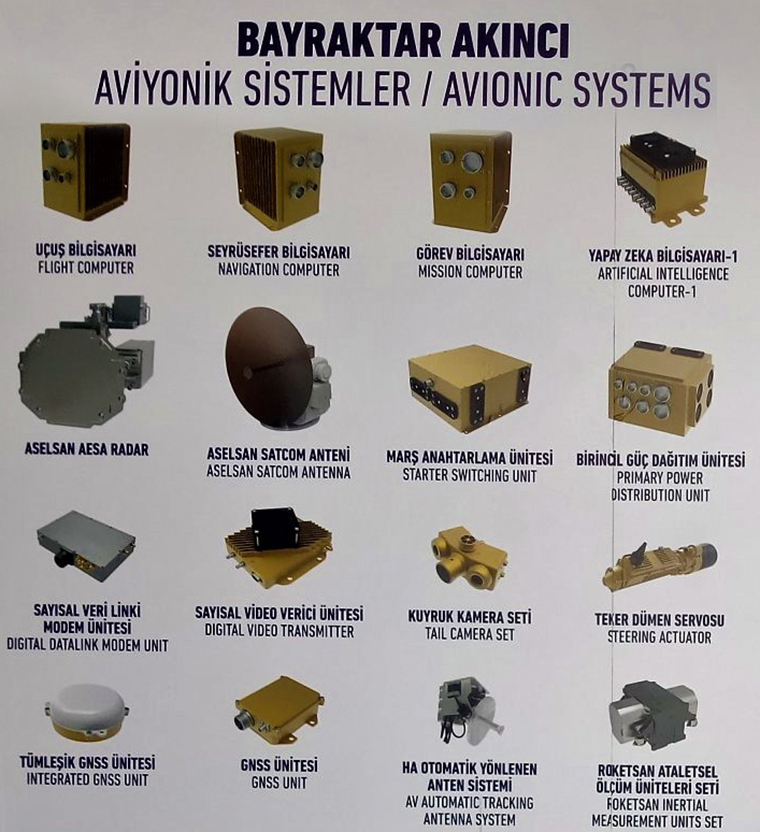Akıncı’da Milli Görüş Hattı ve Uydu Haberleşme Sistemi, Milli Elektronik Destek Podu, Milli AESA (Çok Amaçlı Hava Radarı, Sentetik Açıklıklı Radar, Meteoroloji Radarı) Radarı gibi donanımlar olacak.